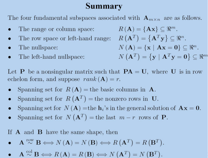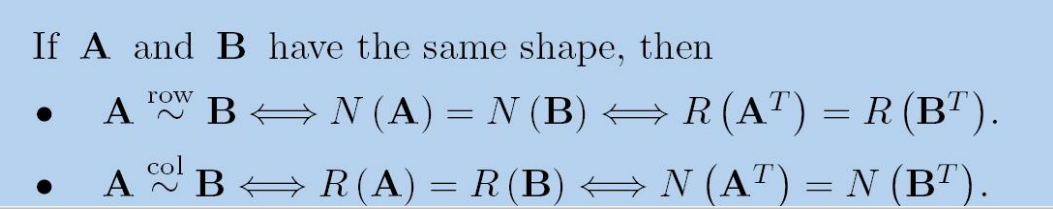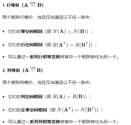 这些还揭示了矩阵行/列等价的本质是它们的行/列空间是否相同