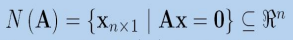 齐次线性方程组的解集构成了矩阵A的零空间。记作