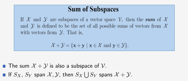 如果X和Y分别是向量空间V的子空间,那么它们的和也是向量空间V的子空间。