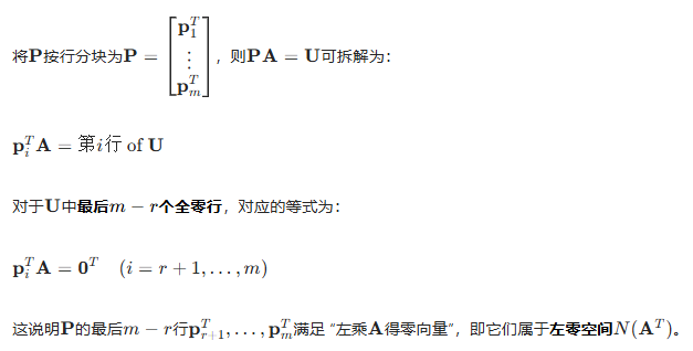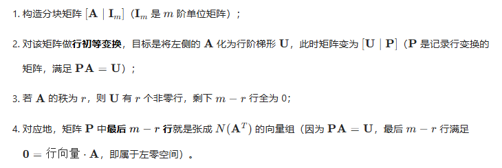 它们本质上都是由主元列(基础解系)张成的,这里解释一下左零空间是如何张成的: