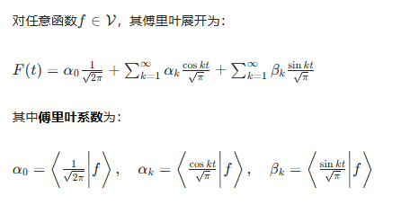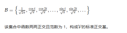 大家可以自行检验这个集是否符合,对于范数,可以分为常数、cos、sin三类检验范数是否为1;对于内积,也可以分常数、cos、sin三类之间作内积看是否为0;