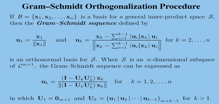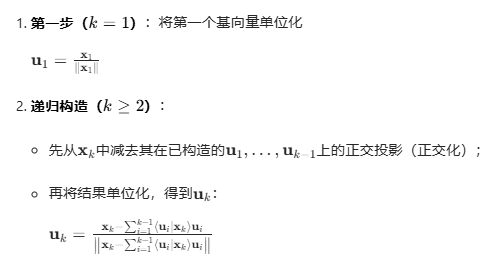 所有有限维内积空间都存在标准正交基,施密特正交化的作用是将向量空间中一组任意的集变为一组标准正交的基,它的形式毕竟复杂,但理解起来是并不困难的