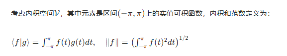 首先我们需要定义一下两个函数如何做内积,在之前我们定义向量内积时,说过它本质上就是两个向量的每个对应分量做乘积再求和,但向量毕竟是离散的,而函数是连续的,连续的内积该如何定义呢?