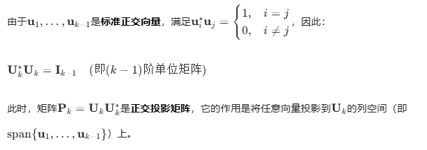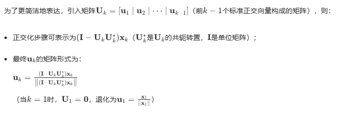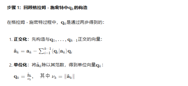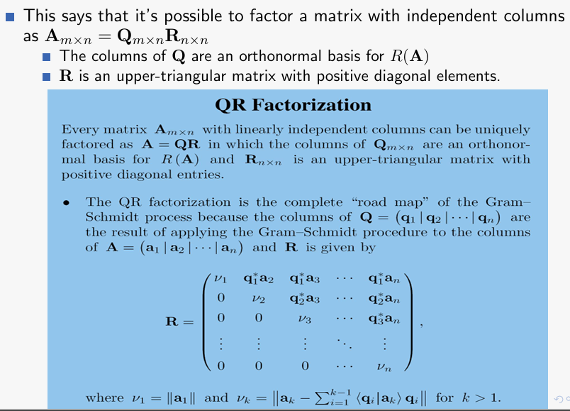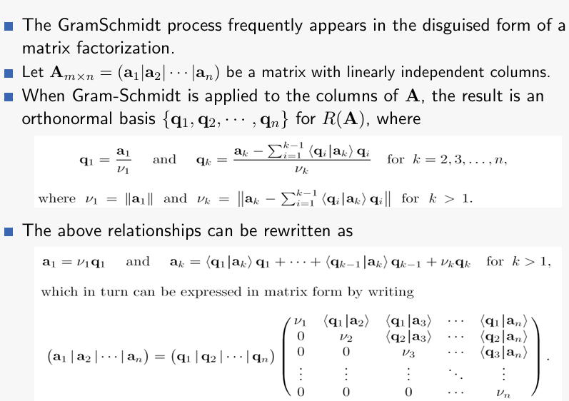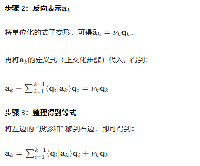 设矩阵的列向量线性无关(列满秩),对其列向量应用施密特过程,得到列空间
