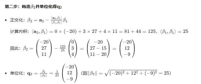 同样的,三维施密特正交化也是这样,将第三个向量减去在前两个已经正交化的投影即可。