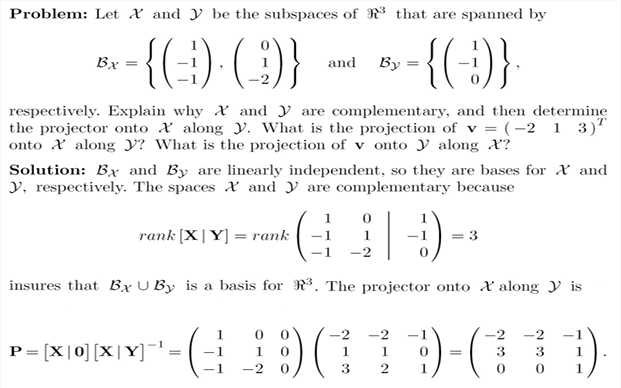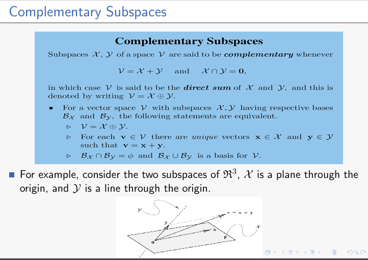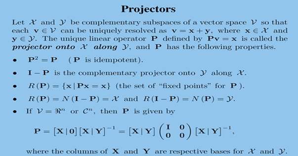 从我们之前学到的投影矩阵来看,对于中的补子空间