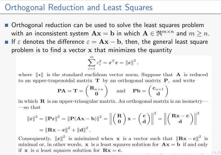 利用正交矩阵的保范性,残差的范数平方可转化为:
