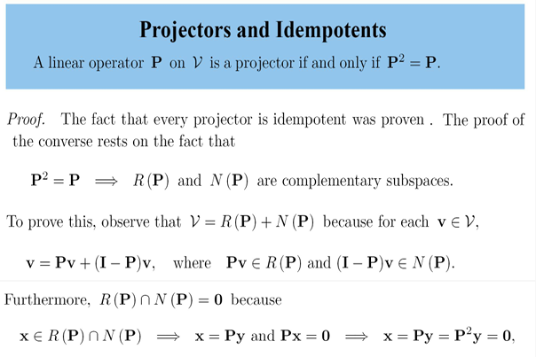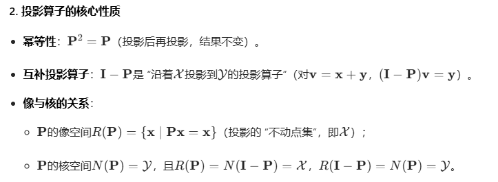必要性(投影算子→幂等):投影算子的定义是 “将向量分解为补子空间的和,保留目标子空间部分”,因此