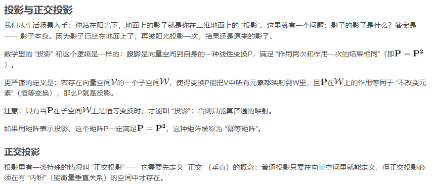 在模与内积(五)中讲正交投影矩阵时,有提到过投影的理解