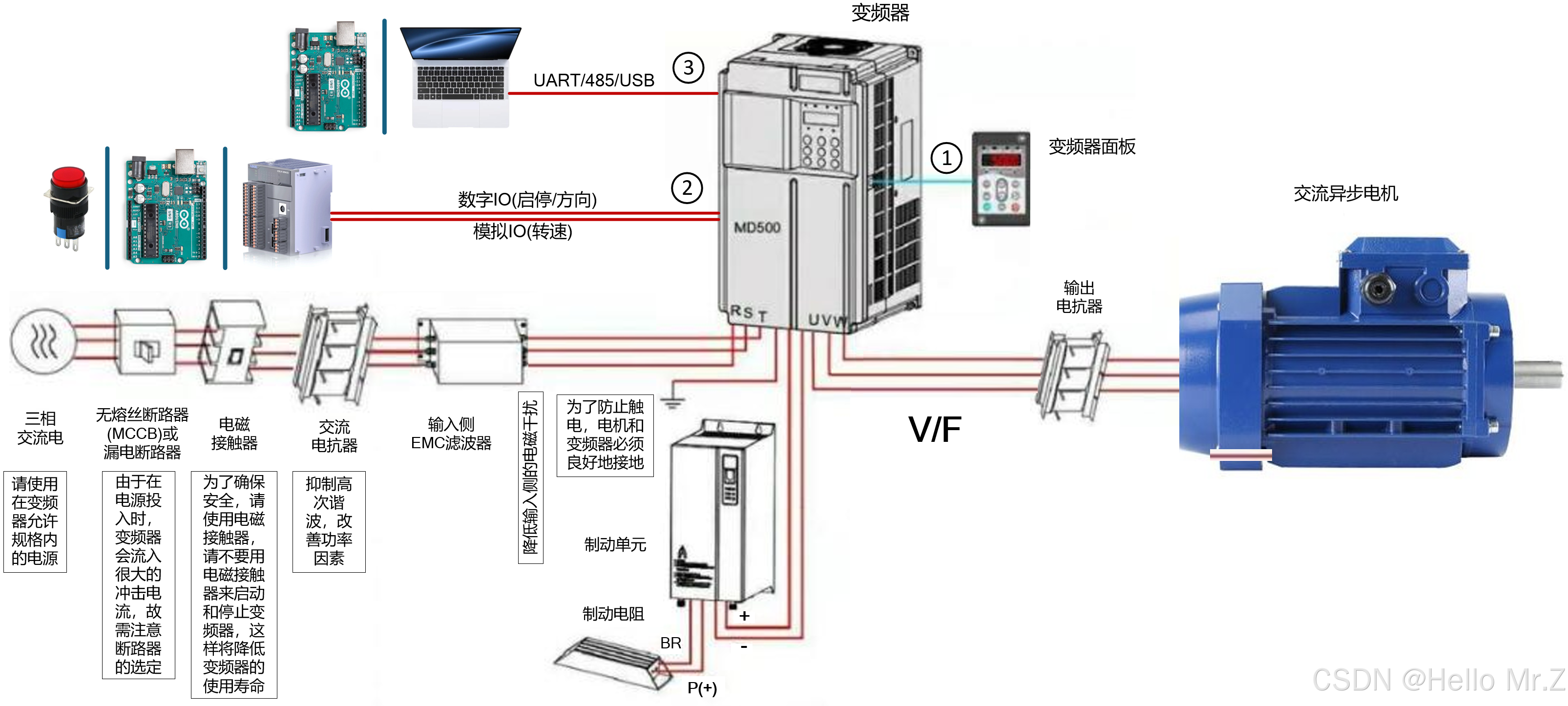 2、PLC/单片机控制:通过数字接口设置方向、启停、通过模拟接口设置转速