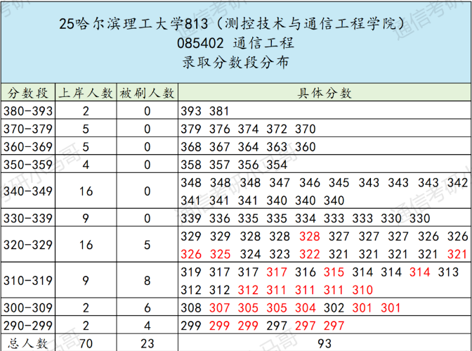 图10:25年哈尔滨理工大学085402通信工程初试成绩分布图