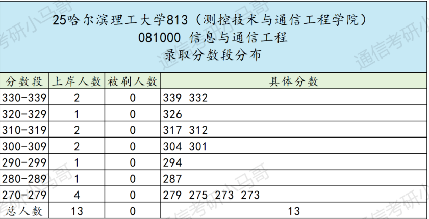 ①高分段绝对安全,但低分段复试风险陡增。330分以上考生全部录取(共41人,0人被刷),说明初试高分在哈理工813专硕中具有极强的保护性。320分以下淘汰率激增!初试分数≥330分基本稳录取,但低于320分的考生,复试表现直接决定成败!
