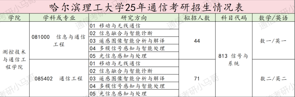 25年招生:25年哈尔滨理工大学信号相关专业公开拟招生115人,学硕44人,专硕71人。一志愿实招83人。学硕大爆冷,缺额31人,专硕缺额1人。
