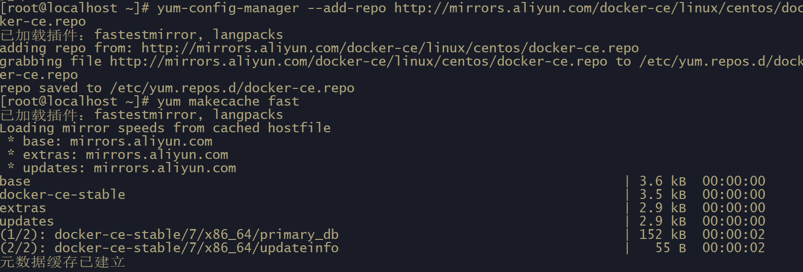 yum-config-manager --add-repo http://mirrors.aliyun.com/docker-ce/linux/centos/docker-ce.repo