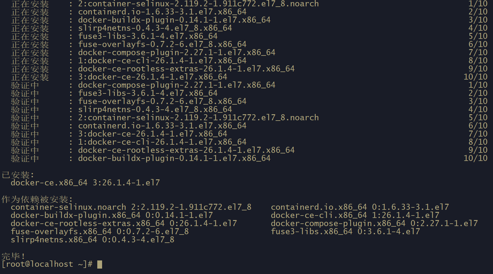 至此,我们在 Linux 中就已经将 docker 安装成功了!!!
