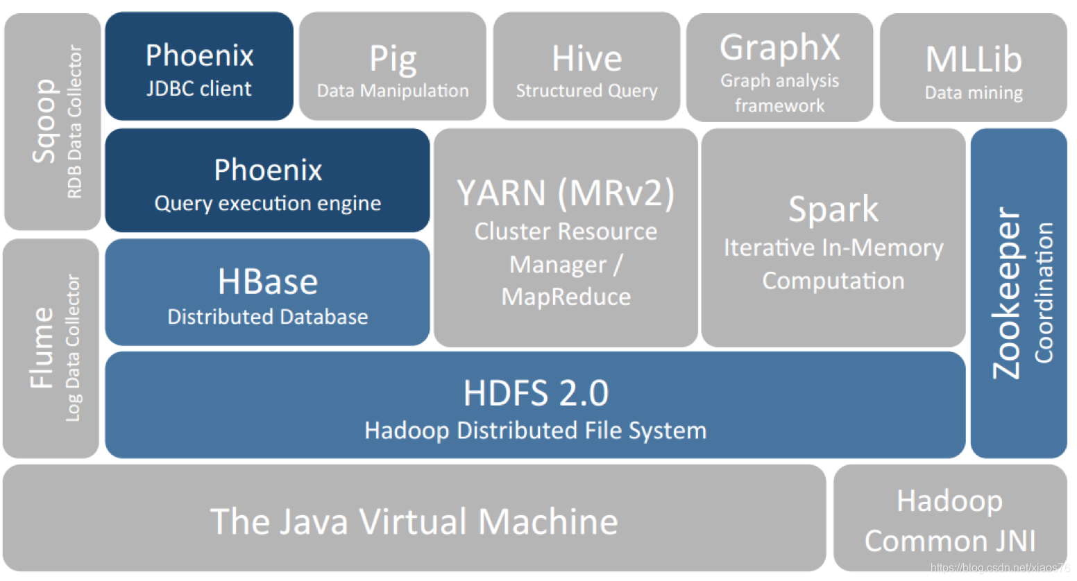 以下图中,我们可以看到phoenix在hadoop生态中的应用位置