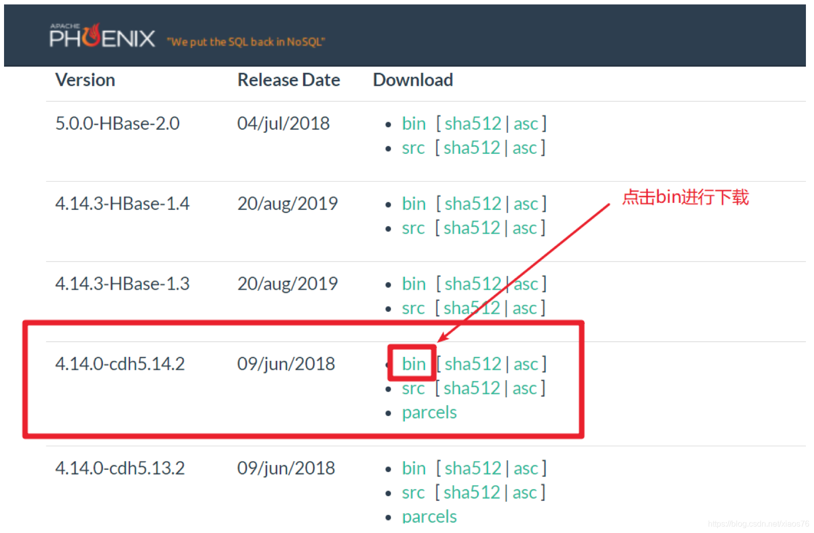 如下图,点击bin页面跳转到下载地址页面,继续往下操作