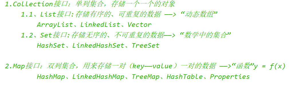 学习目标:我们主要学习Collection接口以及其子接口List、Set接口以及相关实现类。以及Map接口及其实现类HashMap。