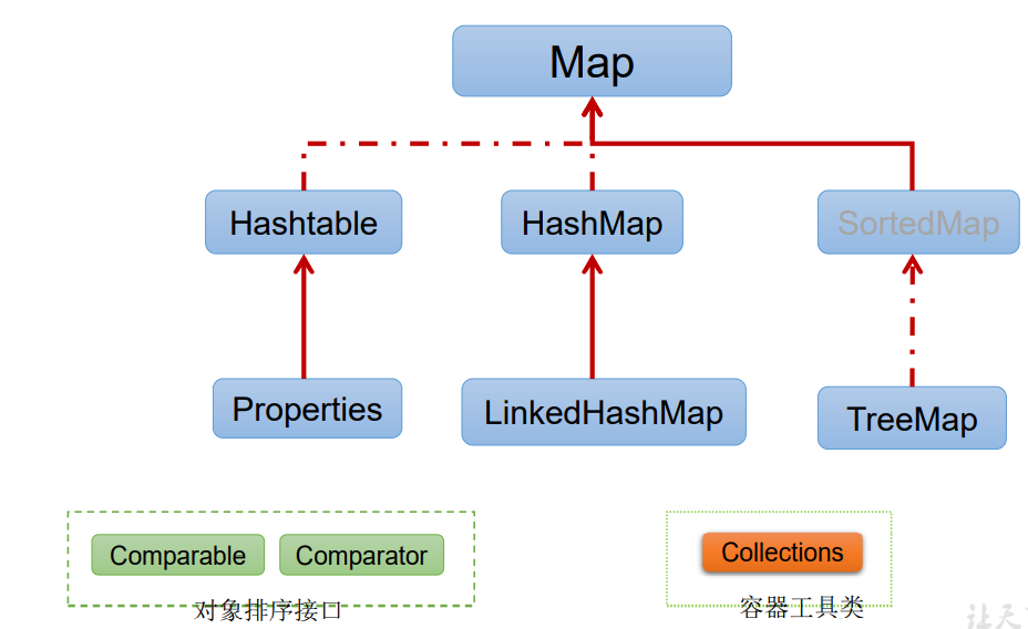 Map | 双列数据 ,用来存储一对(key—value)一对的数据 | HashMap接口 | Hashtable接口 | ||