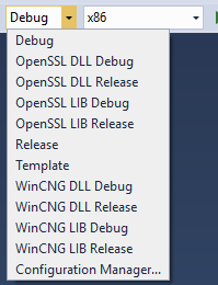 打开 libssh2 的属性管理器,可以看到该项目被官方配置好了已经有很多编译方式: