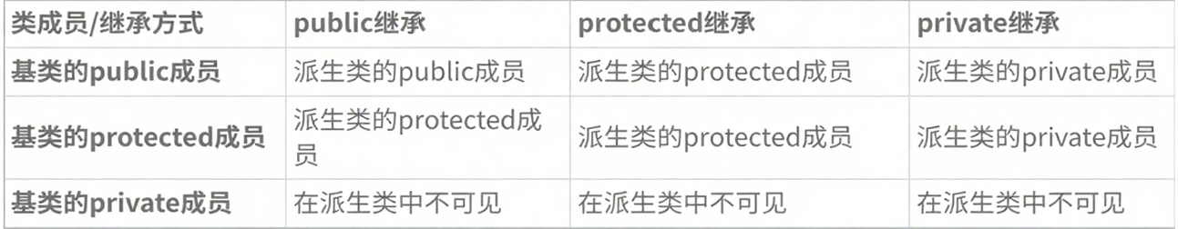 保护继承:父类的公共成员和保护成员会被子类继承,但它们的访问权限会变为受保护。