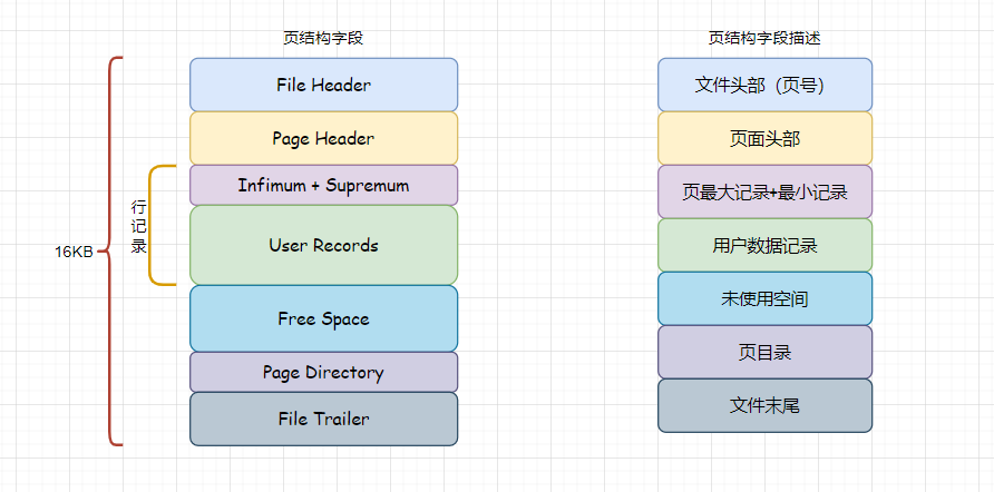 左侧的是组成数据页的7大部分,右侧是这几部分的简要说明。