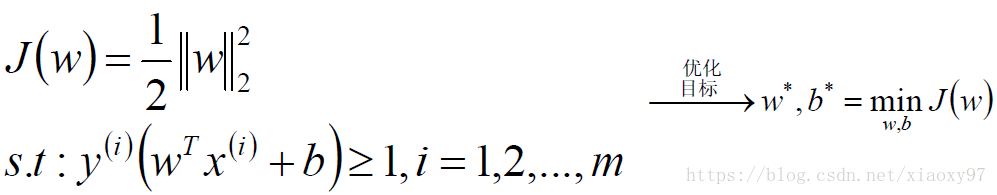 ②SVM模型是让所有的分类点在各自类别的支持向量的两边,同时要求支持向量尽可能地远离这个超平面,用数学公式表示如下: