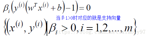 根据KKT条件中的对偶互补条件(松弛条件约束),支持向量必须满足一下公式: