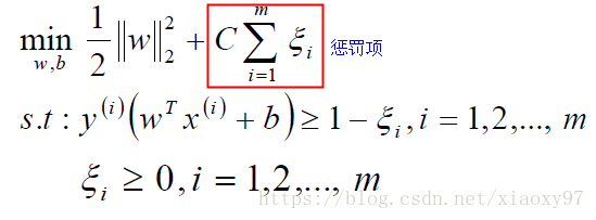 软间隔:SVM对于训练集中的每个样本都引入一个松弛因子(ξ),使得函数距离加上松弛因子后的值是大于等于1。松弛因子(ξ)越大,表示样本点离超平面越近,如果松弛因子大于1,那么表示允许该样本点分错,过大的松弛因子可能会导致模型分类错误。函数中的C>0是惩罚参数,是一个超参数,类似L1/L2 norm的参数;C越大表示对误分类的惩罚越大,也就是越不允许存在分错的样本;C越小表示对误分类的惩罚越小, 也就是表示允许更多的分错样本存在;C值的给定需要调参。