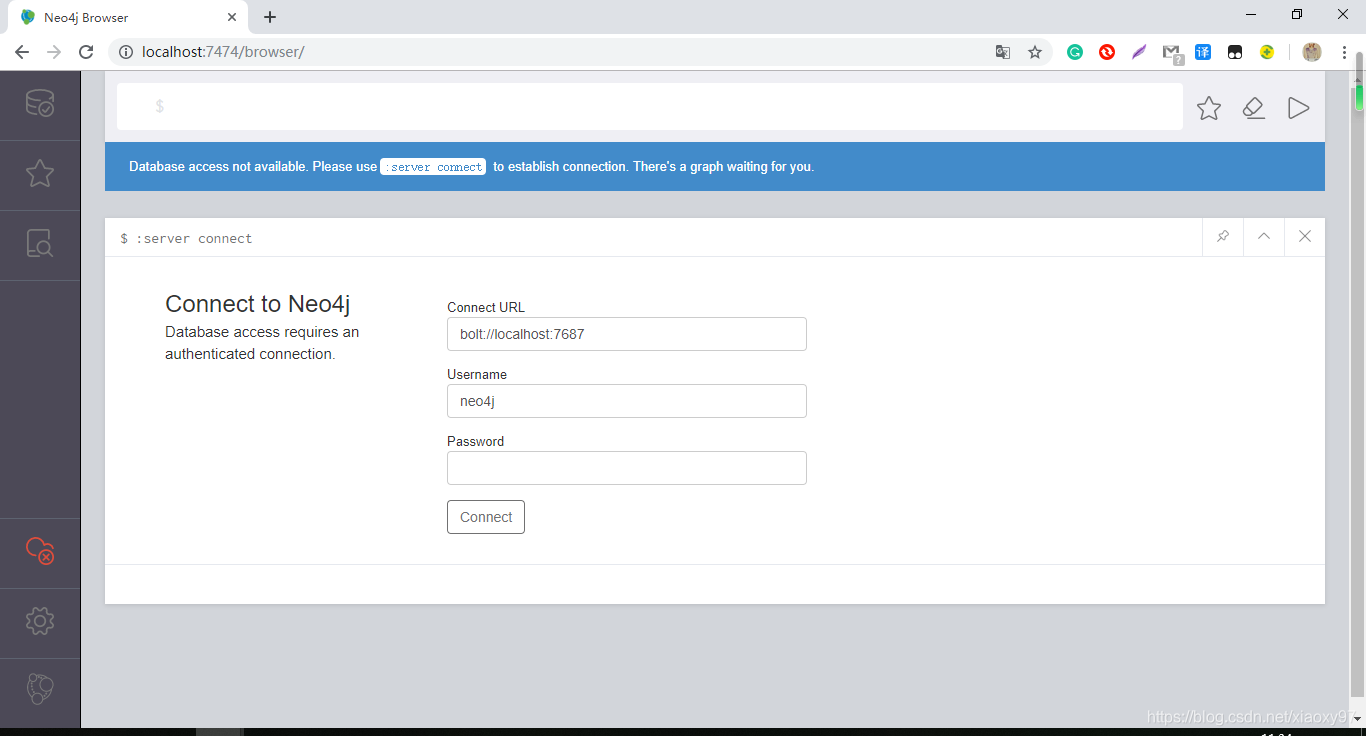 此时就可以在浏览器上打开neo4j的图形化可视界面了。