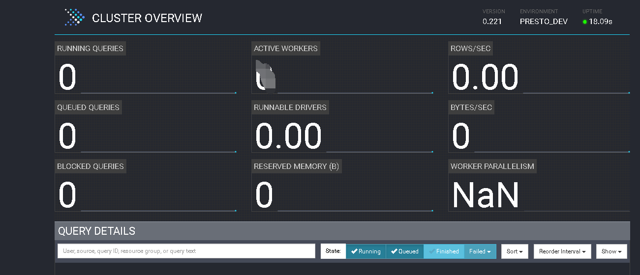 此时如果/data/presto/var日志生成,且无报错信息,代表启动正常。