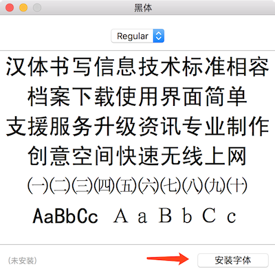 在网站下载 SimHei 字体 http://www.fontpalace.com/font-details/SimHei/,该字体即有Windows字体也有Mac字体。下载后双击打开安装字体
