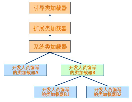 上面的4个加载器并不是并行加载的,JVM中是通过双亲委派机制来加载的: