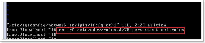 2.4.删除MAC的记录文件 Linux会将使用过的MAC地址记录在这个文件中: /etc/udev/rules.d/70-persistent-net.rules 我们需要将这个文件删除,清空克隆虚拟机时,原虚拟机的MAC信息 rm -rf /etc/udev/rules.d/70-persistent-net.rules