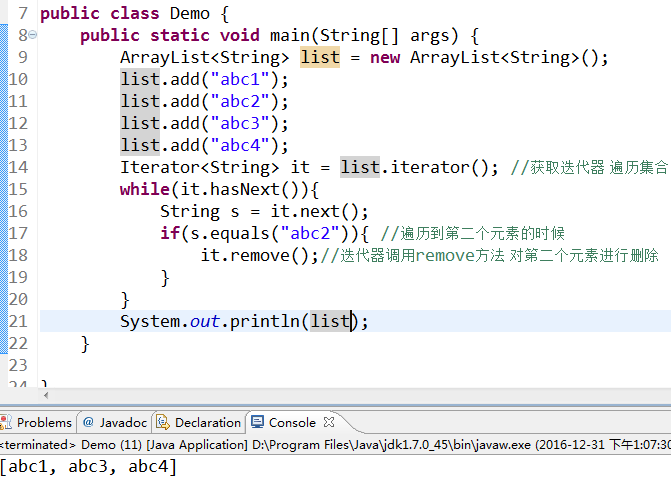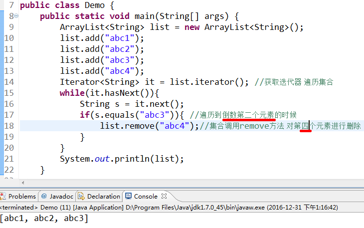查看源码之后并且理解之后,我们再来回想我们的并发修改异常产生的原因参照下面代码