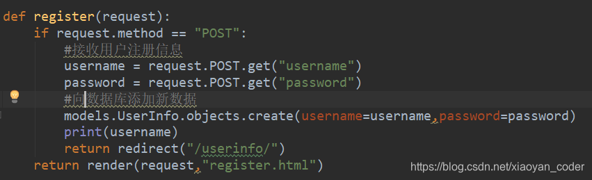 该函数分为两个步骤:1.接收用户请求,跳转到修改信息的页面,并将用户向修改的相关信息的对象传到前台