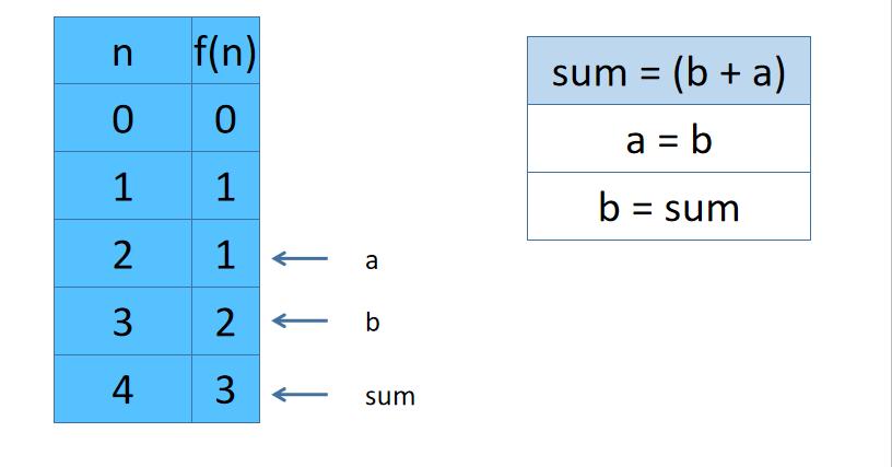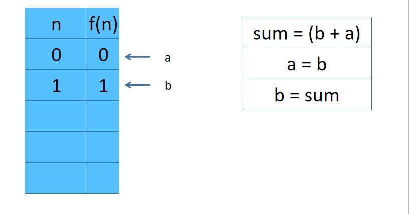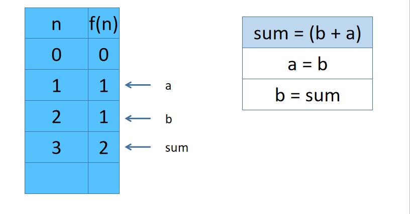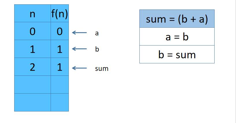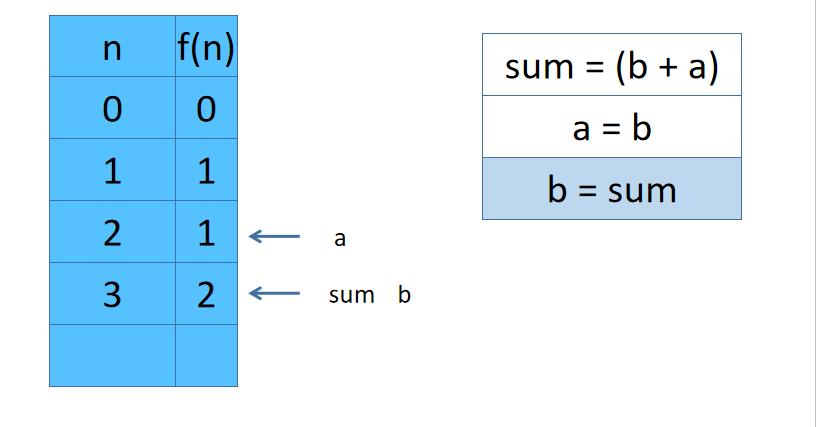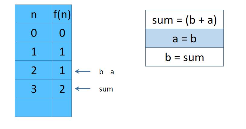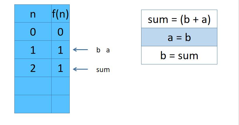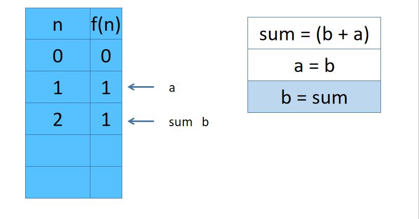 a = b = 1也就是让a 保留 dp[1]的结果 让b = sum = 1也就是让b保留dp[2]的结果 - 所以dp[3] = b + a = 2
