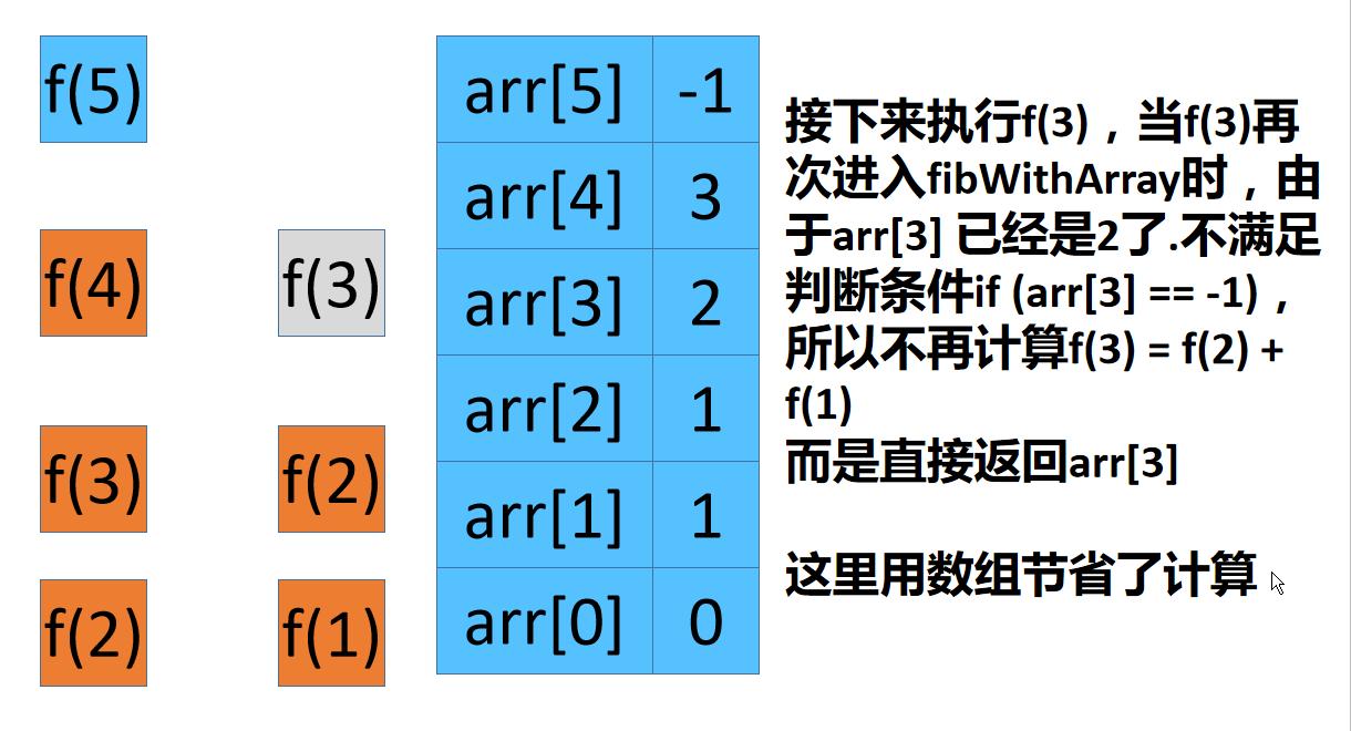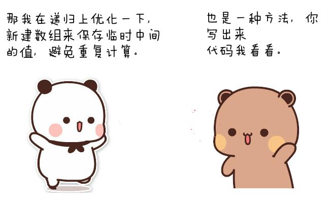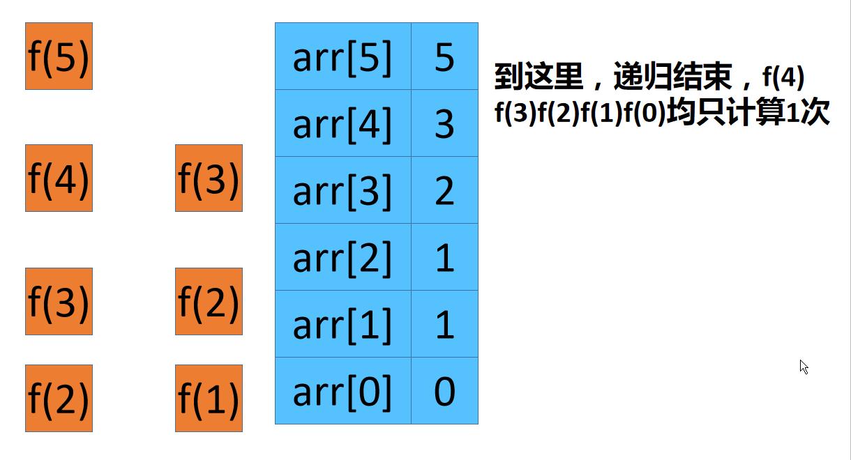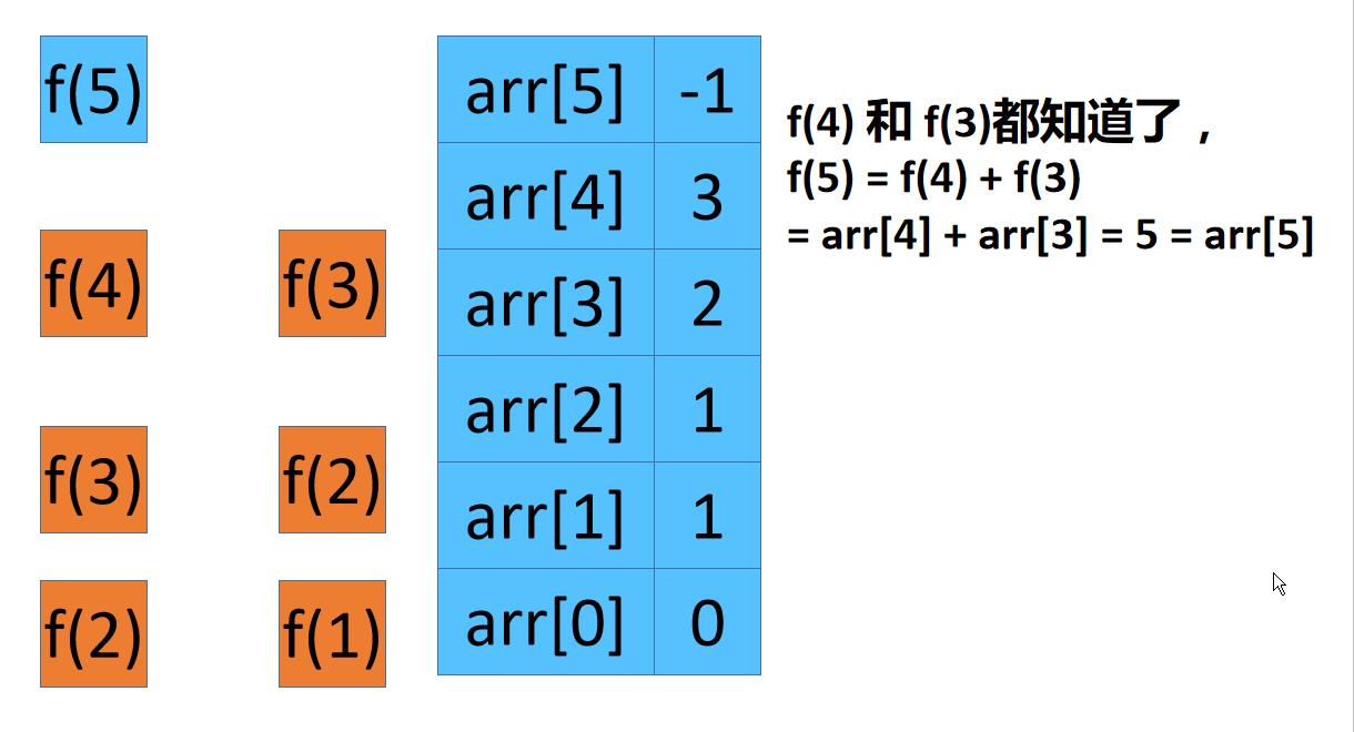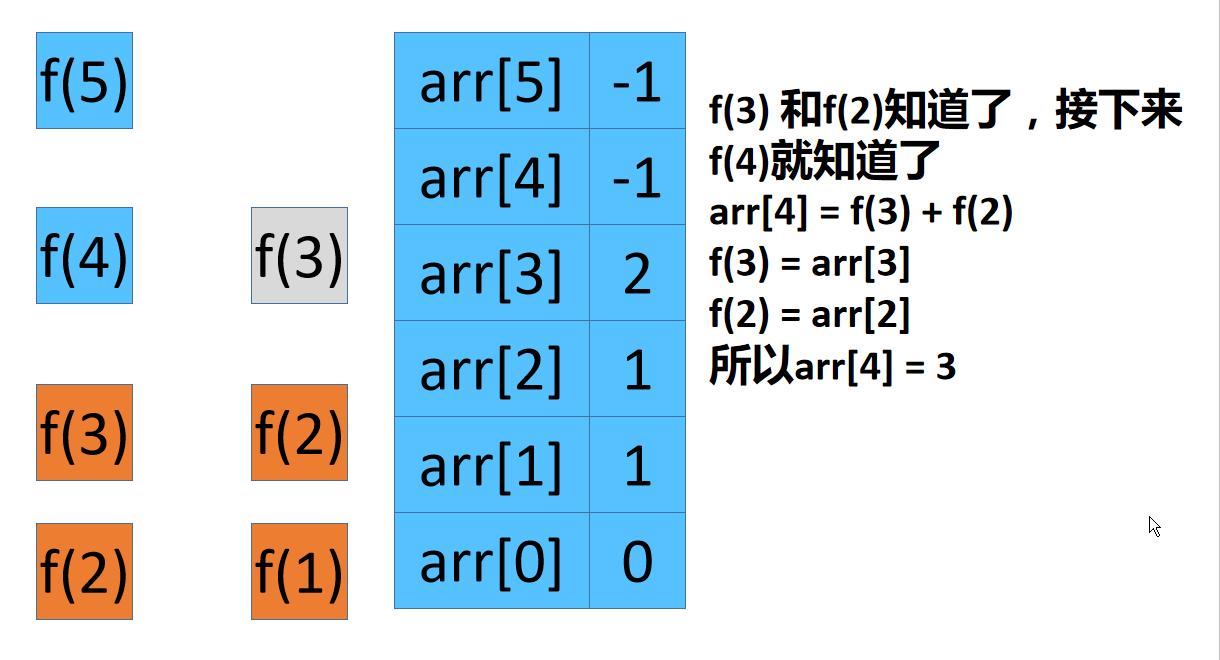 小夕:所以可以看到,因为有了数组,让计算f(5)的时候,f(4)f(3)f(2)只计算了一次,也就是说计算f(n)的时候,f(1)到f(n-1)只计算了一次,大大的减少了递归的时间。