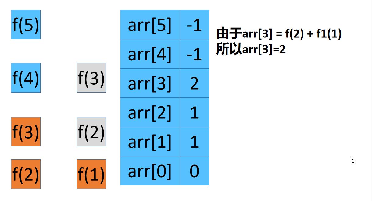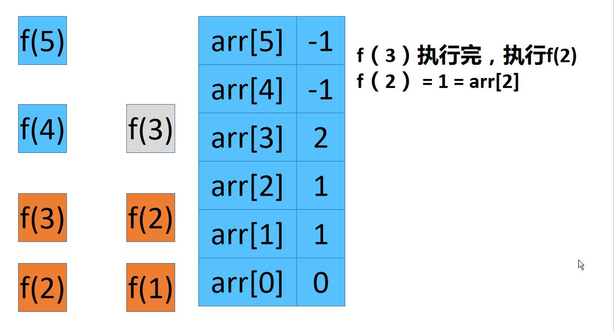 举个例子,比如计算f(5) 从之前的图中可以看出来,为了计算f(5) 那么f(3)需要计算两次。