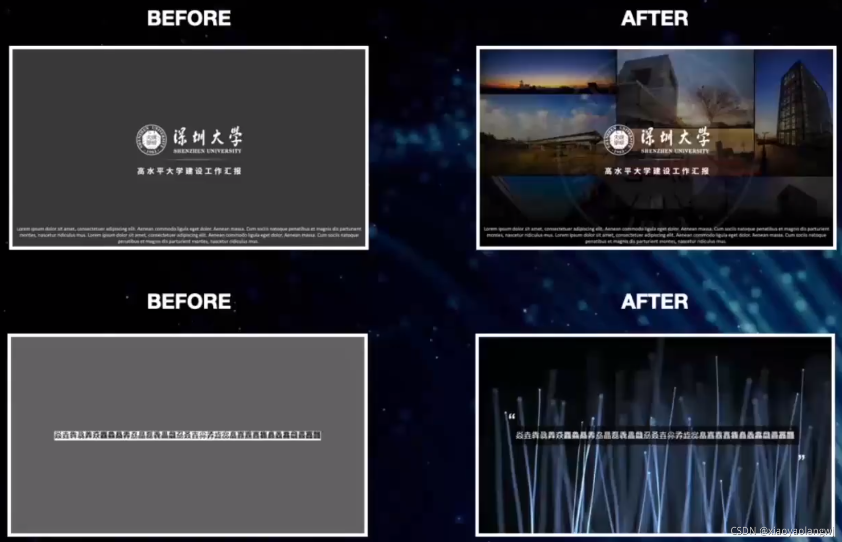 比如说:深圳大学:百度搜出来的往往过时,或者模糊,不够高清。并非不好。只是PPT中不特别适合。联想:哪里有更好看的图片:深圳大学摄影协会,深圳大学宣传,深圳大学官宣等。校内网等。
