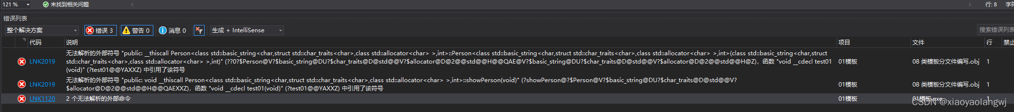 LNK2019 无法解析的外部符号 "public: __thiscall Person<class std::basic_string<char,struct std::char_traits<char>,class std::allocator<char> >,int>::Person<class std::basic_string<char,struct std::char_traits<char>,class std::allocator<char> >,int>(class std::basic_string<char,struct std::char_traits<char>,class std::allocator<char> >,int)" (??0?$Person@V?$basic_string@DU?$char_traits@D@std@@V?$allocator@D@2@@std@@H@@QAE@V?$basic_string@DU?$char_traits@D@std@@V?$allocator@D@2@@std@@H@Z),函数 "void __cdecl test01(void)" (?test01@@YAXXZ) 中引用了该符号 01模板