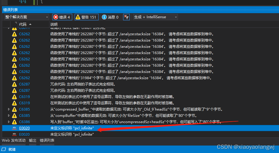 错误信息是:“pcl_isfinite”: 找不到标识符