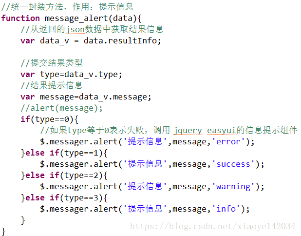 在回调方法中,使用custom.box.main.js中的jqueryeasyui的提示方法。