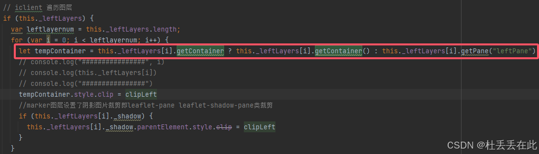 2.图上要素无法按照功能预期卷:这个原因在于,工具内通过改变pane.style.clip属性实现卷动,但是leaflet的点线面要素并不是用pane进行组织的,我尝试先把点线面要素加载到pane里再传入工具,同样失败了,后来通过改造工具的_updateClip方法,同时尝试获取要素的Container和pane,解决要素无法卷动分析的问题。