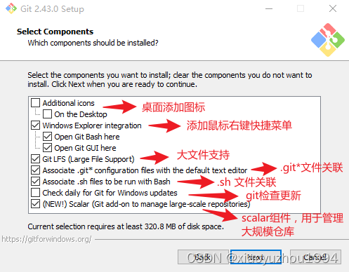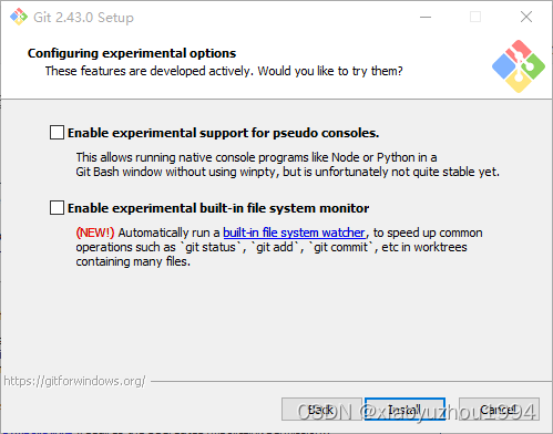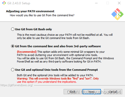 建议使用默认的推荐设置。该选项会将一些基本git包装器添加到你的系统环境变量(PATH),以避免在环境中混乱地添加可选地Unix工具。