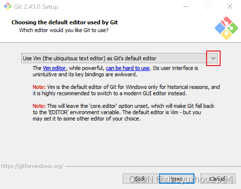 git使用的默认编辑器是vim编辑器,下图中称Windows下默认使用vim编辑器是历史原因,建议使用更现代化的编辑器。git在某些需要打开编辑器的操作时,如提交消息、解决合并冲突等会使用默认编辑器。