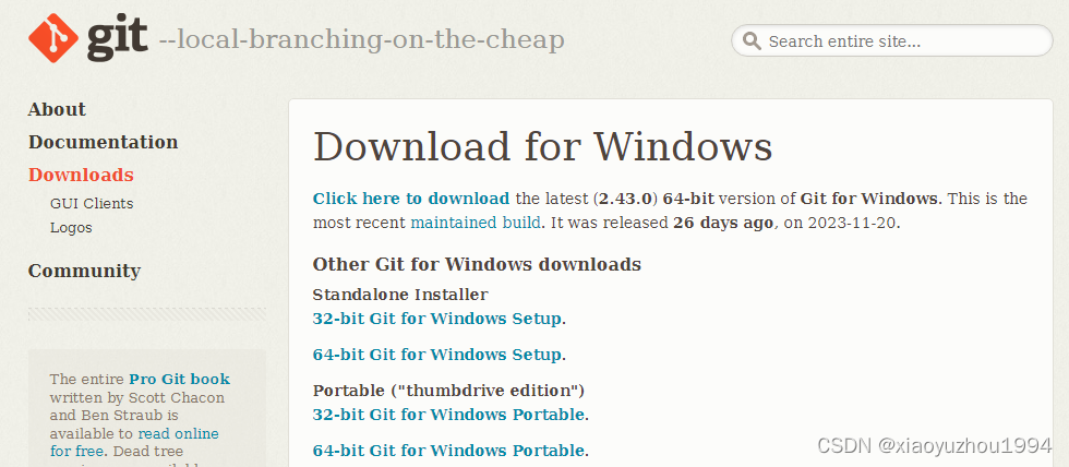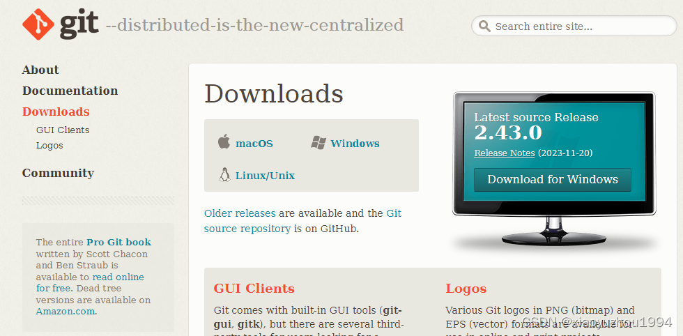 - 访问git官方下载网址,Git - Downloads,根据自己的电脑系统,下载安装包