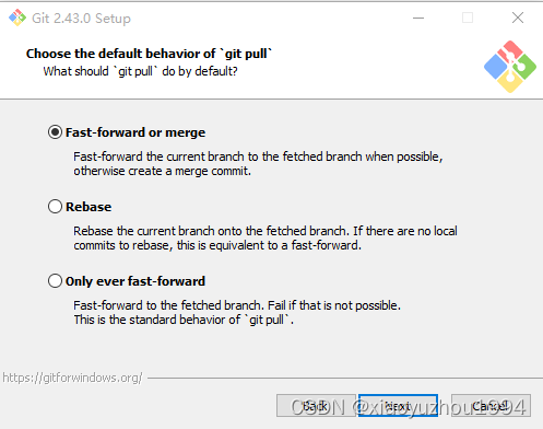 建议使用默认配置。该配置下执行git pull命令时,git尝试使用快进操作将当前分支更新到已拉取分支的最新状态。如无法进行快进操作,如存在冲突,git将创建一个合并提交。