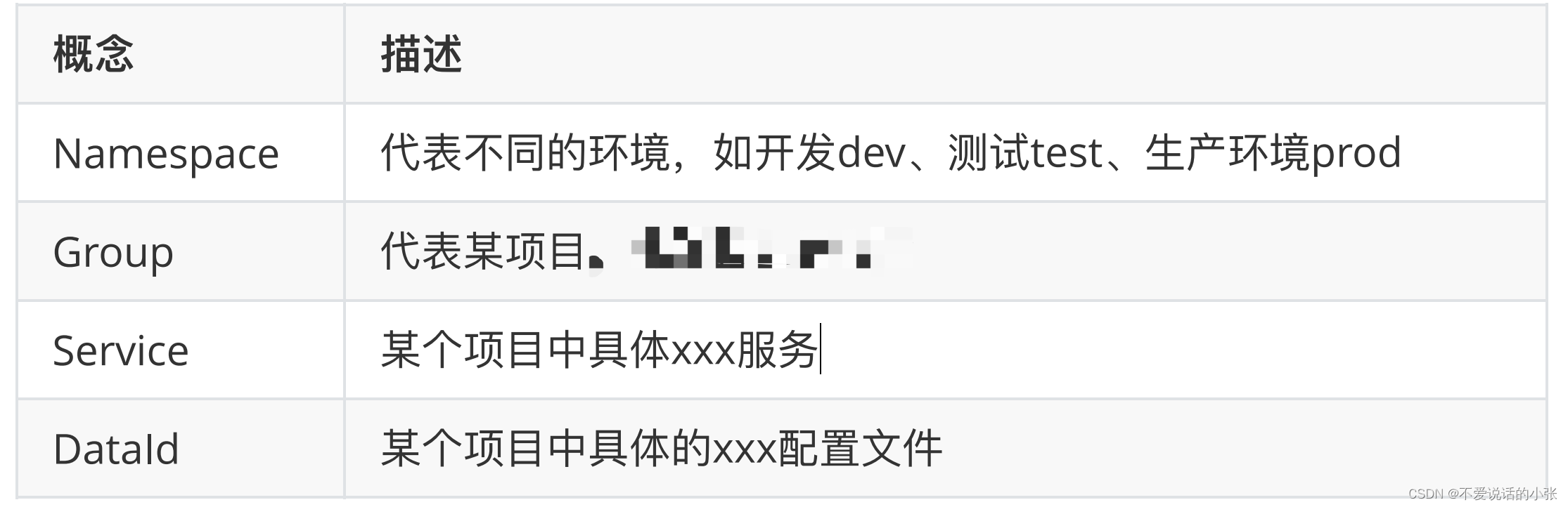 Namespace命名空间、Group分组、集群这些都是为了进⾏归类管理,把服务和配置⽂件进⾏归类,归类之后就可以实现⼀定的效果,⽐如隔离。