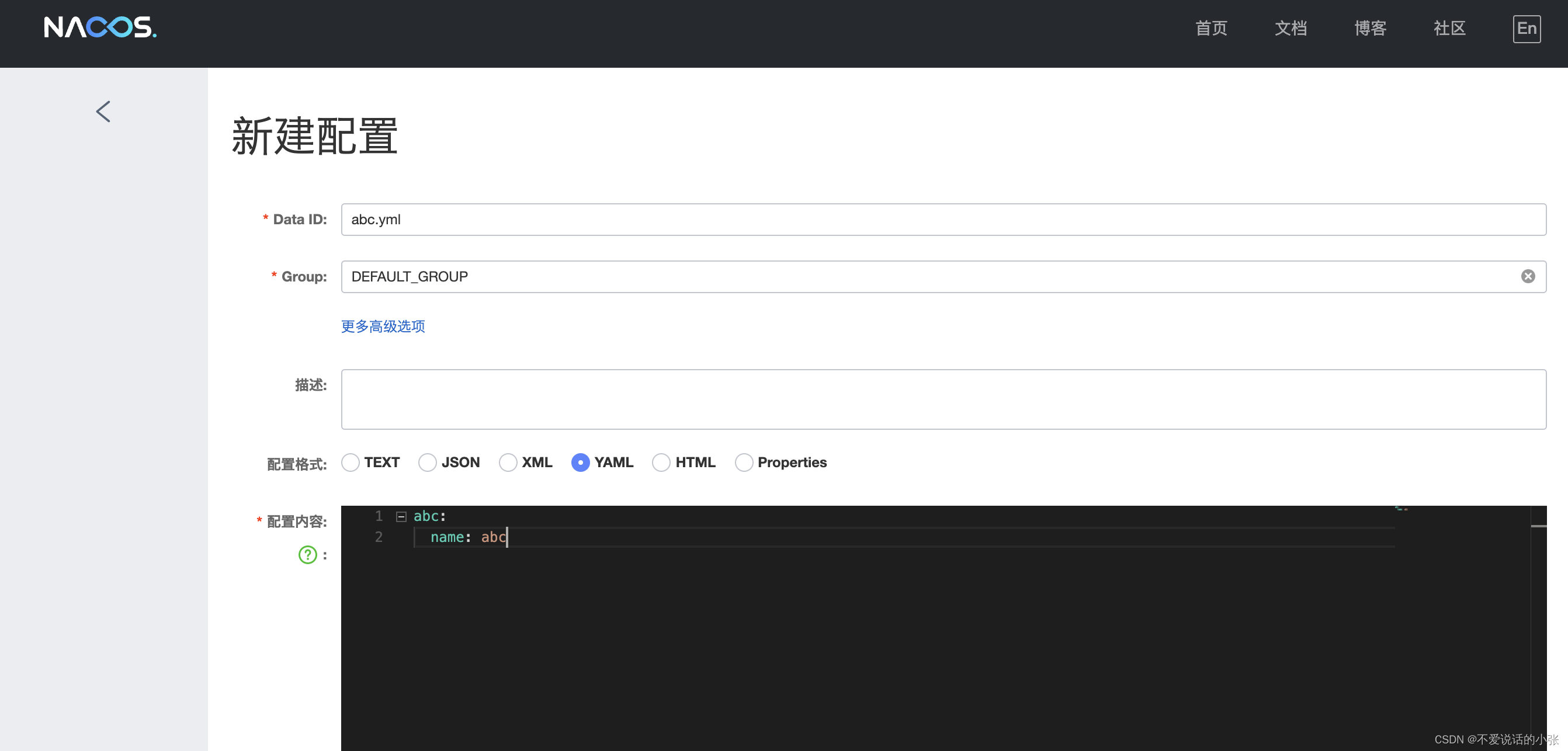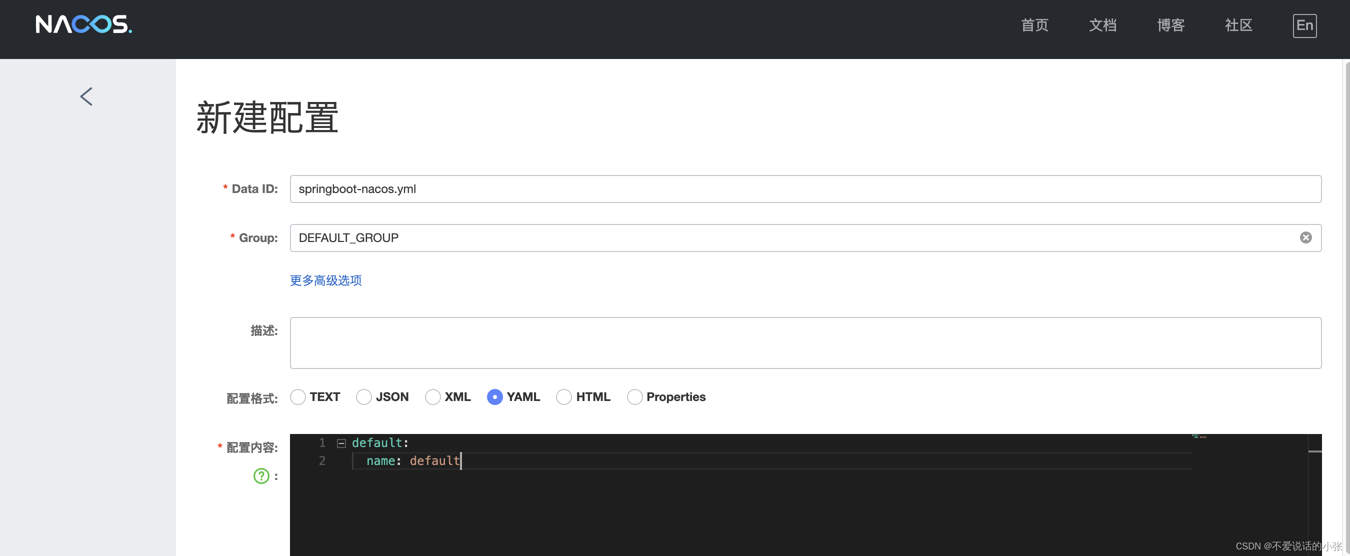 准备工作,在nacoa配置中心中添加对应的文件信息